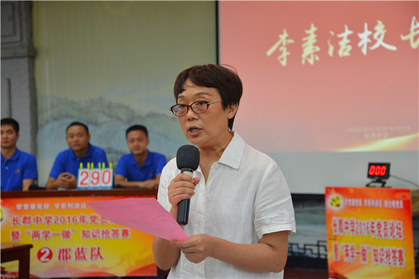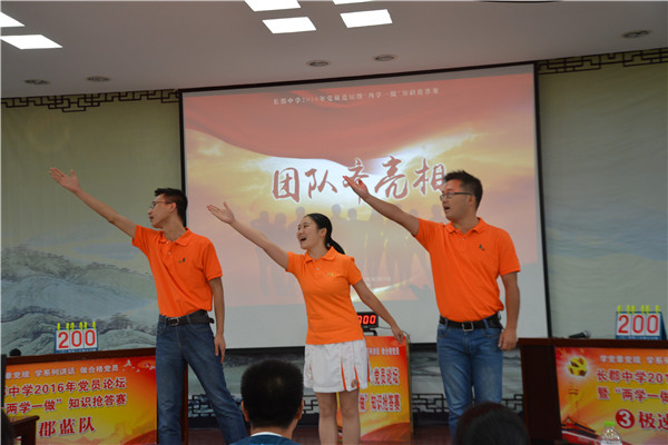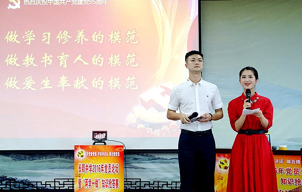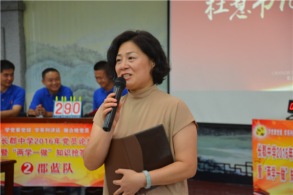 2016年8月26日下午,长郡中学2016年党员论坛暨“两学一做”知识竞赛在长郡双语实验中学举行,长郡本部及长郡双语校区的全体党员参加。两校区党委委员出席并担任评委,代表市教育局参加长沙市党规知识电视抢答赛的选手麓山国际周婷老师和长郡梅溪湖刘芝老师应邀担任仲裁评委。