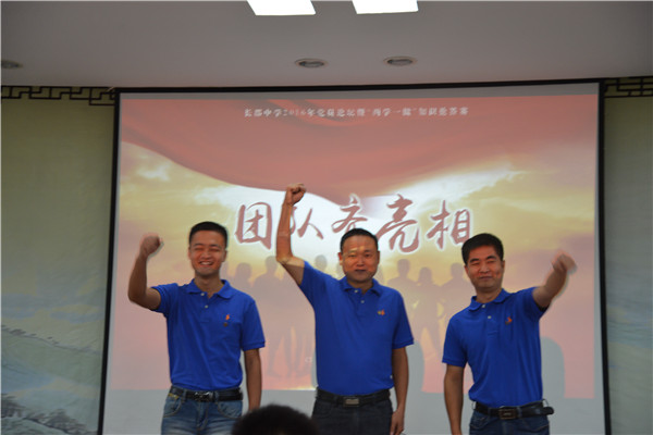 本次比赛设立了“党纪条规知识大比拼”、“教育智慧即兴演讲”、“师德主题微党课”三个环节。为促进两校区党员的学习交流,两校初、高中支部联合组队,经各支部初赛选拔,成立了“一年级青春无敌”、“行政组郡蓝”、“二年级极速前进”、“三年级勇往直前”四支队伍。比赛一开始,四支代表队齐亮相,展现出团队极强的合作精神和积极向上的风貌。