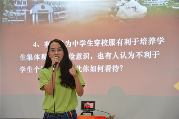刘蓉芳、何立军、于鹏飞、杨葵4位选手代表各代表队进行了即兴演讲。在现场抽题之后,仅仅准备2分钟,他们分别就“开学第一课讲什么”、“QQ、微信能否取代家访”、“怎样理解教育的爱与责任”、“如何看待中学生穿校服不利于学生个性发展”等四个问题阐述了自己的观点。在随后的现场采访中,长郡双语实验中学党委向星书记说,四位选手的演讲主题突出、思路清晰、表达准确精炼,体现了老师对教育的理解、对责任的思考、对工作的反思,特别是老师能恰到好处地把刚刚结束的奥运故事作为教育素材,体现了老师们的用心和教育智慧。向书记希望全体党员牢记习总书记的七一讲话中“全党要关注青年、关心青年、关爱青年,倾听青年心声,做青年朋友的知心人、青年工作的热心人、青年的引路人”的要求,用心、用情、用智慧做教育,完成好立德树人的教育使命。
