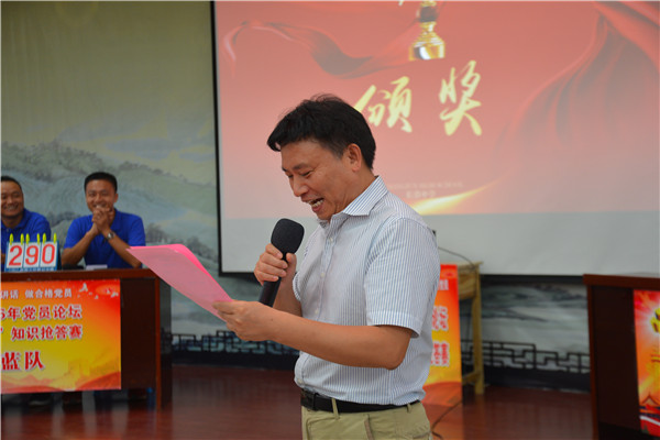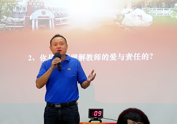党委杜慧书记总结讲话,表扬所有选手精心备赛,主持人辛苦付出,号召全体党员教师向他们学习,不怕困难,不忘初心,充分发挥党员的先锋模范作用,为学校的教育事业贡献力量。
