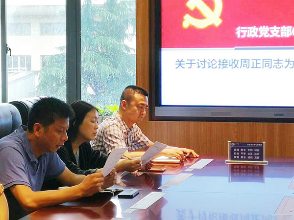 该同志入党介绍人黎彬、刘虹两位同志分别从思想、工作等方面对其在预备期间的成长与表现做了详细的介绍。王星同志宣读支部对周正同志的考察意见。