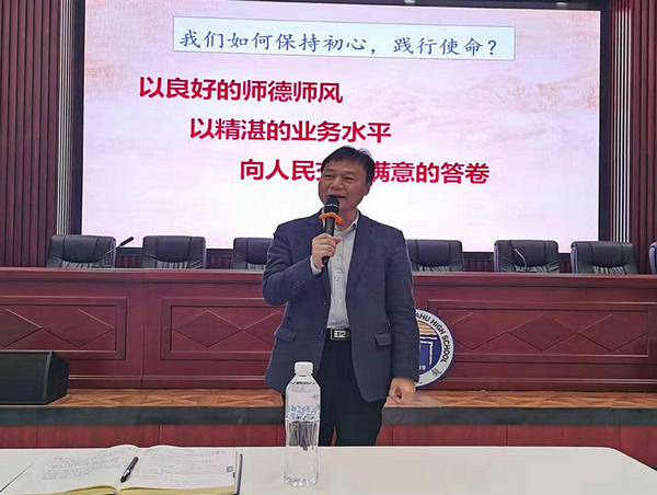 活动结束之际,高三年级主管、教务处主任罗清华同志有感而发:每一位普通党员都要在自己的岗位上发光发亮,贡献自己的一份力量;我们高三的每一位党员老师都一心扑在学生上,忘我工作,在思想和行动上,都体现了共产党员的“初心”意识和“使命”当担。希望大家自始至终“初心”不忘,砥砺前行!