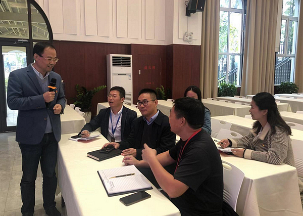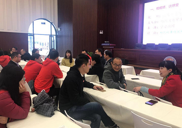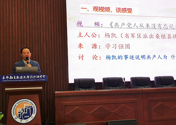 离开郭亮故居后,来到长郡教育集团文郡洋沙湖中学,开展两校“支部共建,共促发展”的党建活动。高三党支部书记杨新国老师给两校党员上了一堂别开生面的党课。首先观看短片。通过《共产党人从来没有忘记为什么出发》和《最美教师李保国》两段视频,激发大家思考:杨凯的事迹说明共产人为什么而“出发”?李保国的事迹说明作为党员的老师为什么而“出发”?然后分党小组讨论。大家围绕主题热烈讨论杨凯、李保国两位先进典型“为什么而出发”,每个党小组推荐一名党员就主题教育和自身实际谈体会和感受,将“不忘初心、牢记使命”的深刻内涵与工作实践结合起来,推动主题教育向纵深发展。