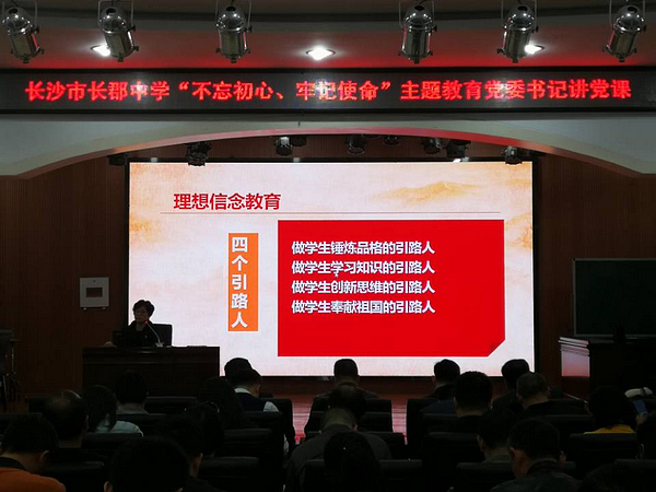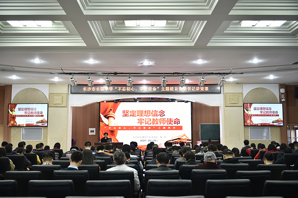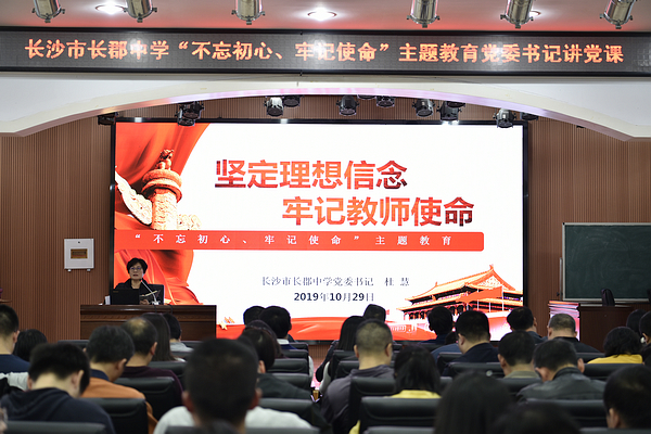 为提高党员政治素养,进一步坚定理想信念,按照中央和省委、市委及局党委开展“不忘初心、牢记使命”主题教育的部署要求,10月29日下午,我校党委杜慧书记在办公楼六楼会议室主讲题为“坚定理想信念,牢记教师使命”的专题党课。全体党员参加。