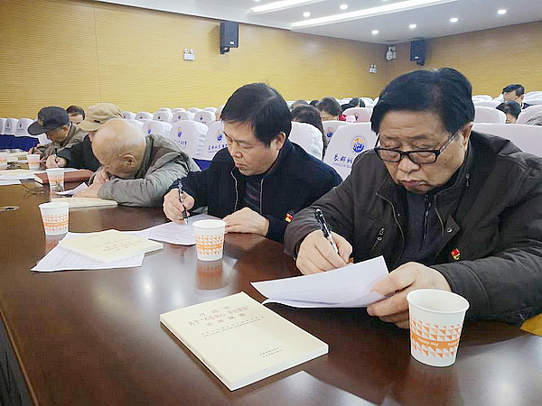 在该校办公楼一楼会议室,支部全体党员认真开展了组织生活会系列工作?;崆?,办公室同志组织了专题学习,传达了上级党组织的相关要求?;嵘?,老党员们结合自身情况,从政治学习、服务群众及作用发挥等方面进行了认真的小结。在民主评议环节,老党员们一笔一划,认真严谨,让人为之动容。整个过程井然有序,严肃和谐。 (图:乔梦平 文:海晏)