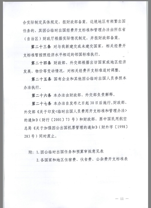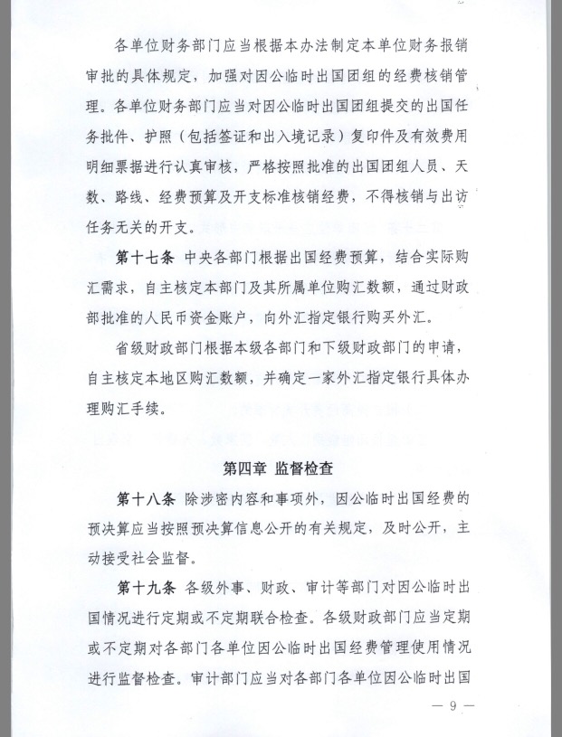 财政部、外交部关于印发《因公临时出国经费管理办法》通知