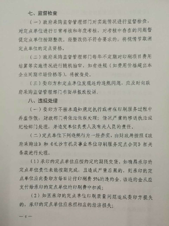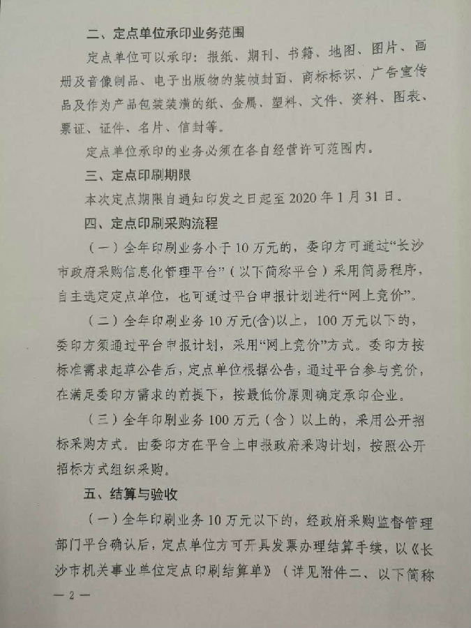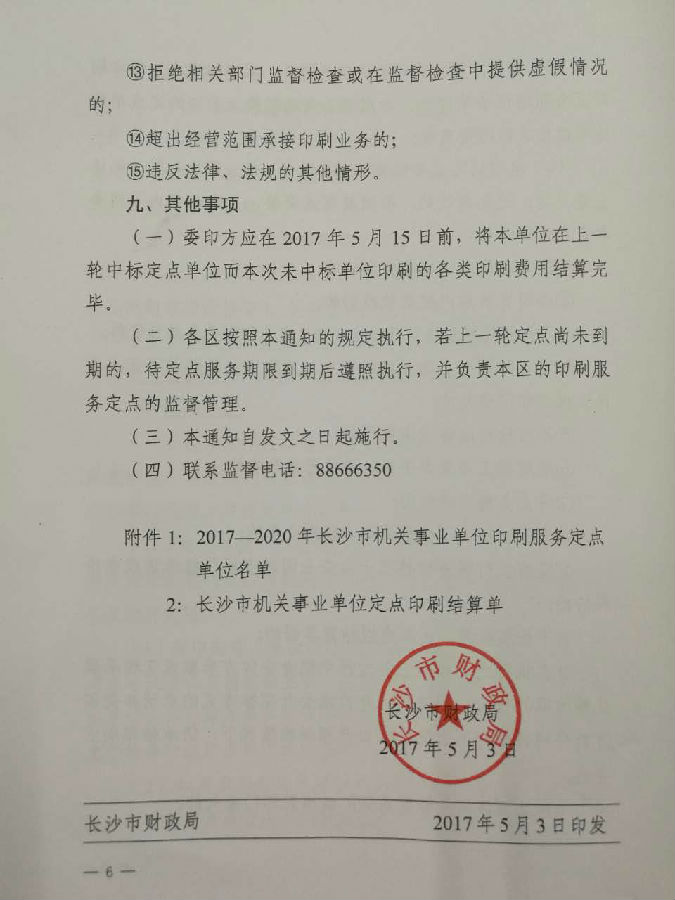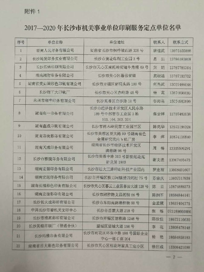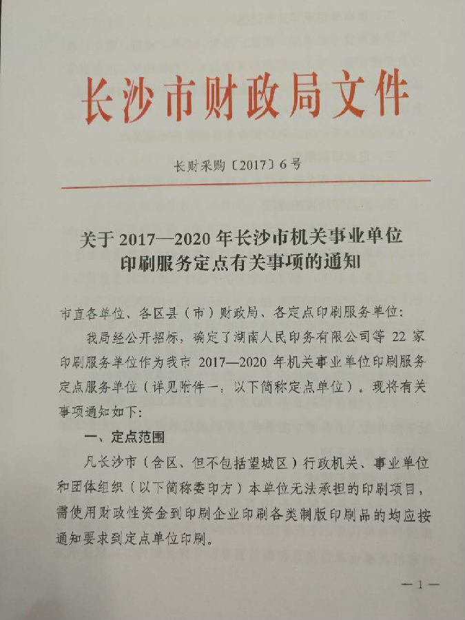 【上级文件】关于2017-2020年长沙市机关事业单位印刷服务定点有关事项的通知
