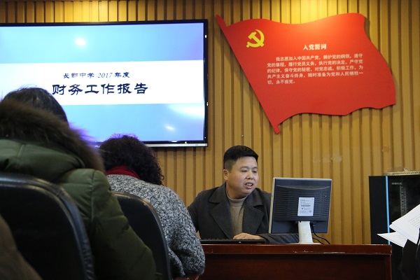 会上,校长李素洁作2017年度学校工作报告,副校长黎彬向与会代表详细通报了2017年度学校财务工作报告。