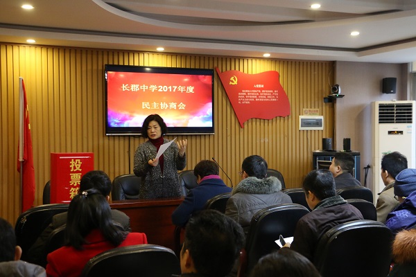 工会副主席周正就长郡中学第十二届教代会第二次会议代表提案的立案情况进行了说明,并就2017年工会工作进行总结汇报。代表们对李素洁校长2017年学校工作报告及黎彬副校长2017年学校财务工作报告提出了合理化建议。