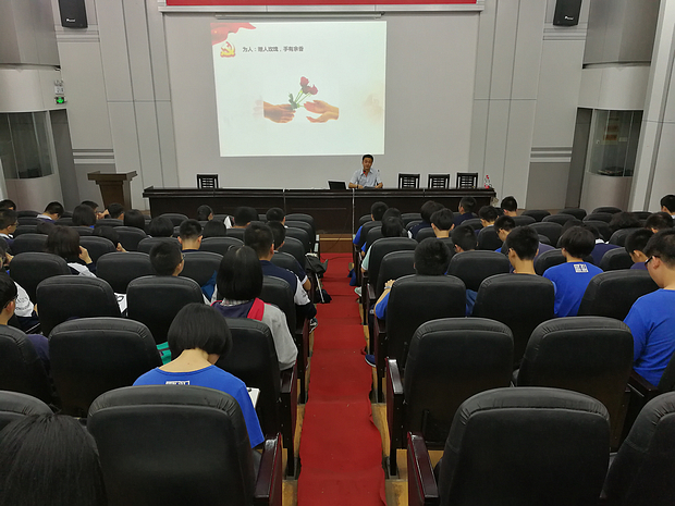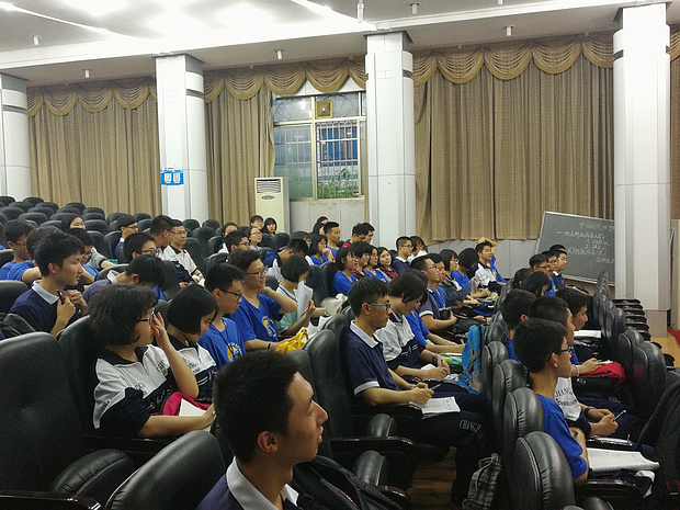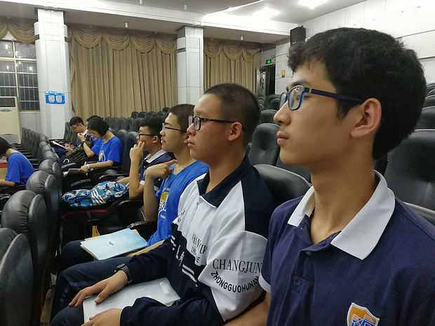 2017年5月12日下午4:45,长郡中学青年党校全体成员聚集在科技楼二楼阶梯教室,与青年党员常锦老师一起,开始了第二十五期青年党校最后一次党课学习。