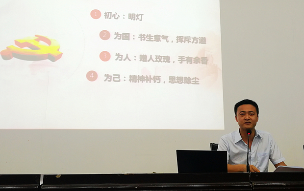 本次党课的主题是:《初心·明灯》。这样一个深刻的话题在常老师隽永舒缓的语调下徐徐铺开,把党这盏明灯点亮起来。