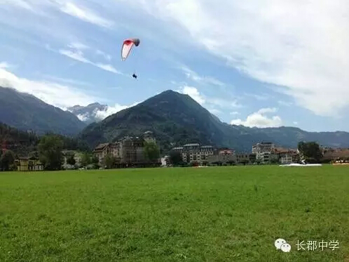 如果说念念不忘的奥地利的insbruck是童话仙境,那么瑞士的interlaken(因特拉肯)绝对是世外桃源。她位于两湖之间,远处的少女峰,或云蒸霞蔚,或云纱半掩,温婉的景象和群山环翠的小镇相得益彰,美丽极了。午后阳光正好,凉风拂面,晒在身上,吹在脸上,惬意舒适。人们骑单车,晒太阳,跑步,喝咖啡,高空滑翔……闲适,悠然,带着微笑,带着满足,瑞士人与世无争,崇尚和平,热爱生活,所以上帝是如此眷顾他们赐予他们安静的湖和银装的山。时间总是停在这,属于因特拉肯,属于当地人。