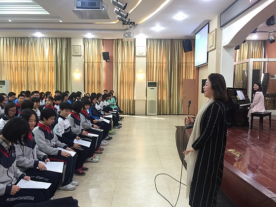 日前,本学期第一次长沙市中学音乐教研活动在我校办公楼会议室举行,此次活动由长沙市音乐教研员娄瑶琪老师组织,市中学音乐教学理事会全体理事及全市百余名音乐教师参加。首先,长沙市音乐教研员娄瑶琪老师对上学期工作做了回顾和总结,并布置了本学期的音乐教研活动安排。随后,我校音乐教研组黄琦老师指挥校合唱团向全体老师展示了《美丽的夏牧场》、《斗牛士进行曲》两首合唱歌曲,获得了热烈的掌声。最后,黄琦老师以XX班为例,做了有关合唱入门练习讲座,从合唱入门、作品分析等各方面与老师们进行了深入探讨,获得了现场老师们普遍认可及高度评价。