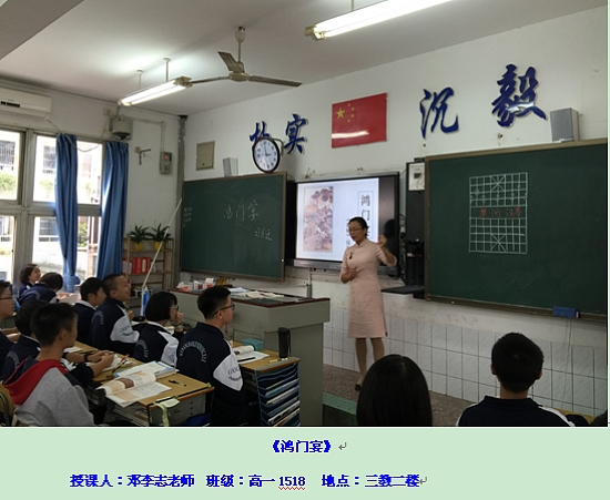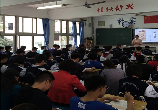 南北朝时期的天文历法算学家祖冲之“不虚推古人”,“亲量圭尺,躬察仪漏,目尽毫厘,心穷筹策”,体现了大无畏的科学精神。这种精神在我们的中学教育中也应当提倡。2015年10月9日,长郡中学语文教研组公开课暨秦洁农村名师工作站第二次活动在长郡中学高一举行。邓李志老师用她的《鸿门宴》一课为我们实践了这一科学精神。来自长郡中学、长沙市11中、长郡梅溪湖中学、培粹中学、宁乡五中、宁乡六中、宁乡七中的65位老师参加了这次活动。