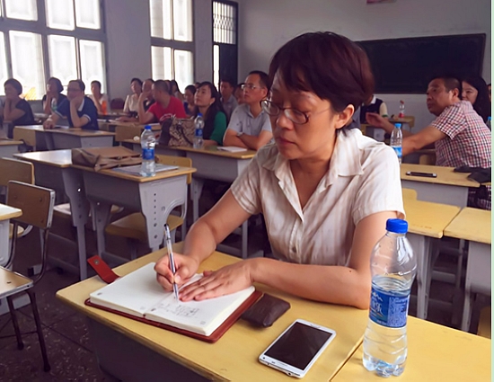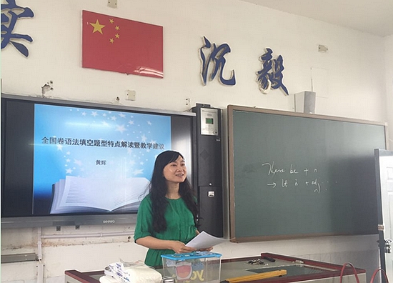 美丽优雅的宁老师全程英文,首先介绍了新课标全国卷的四大构成部分,在详细介绍了短文改错的题型特点,考点归纳,及解题步骤。一身科研气质的黄辉老师也从以下四个方面对语法填空题分享了她独到的见解与心得:题型简介,命题特点,对教学的反拨作用及备考建议。期间,宁老师、黄老师与与会的老师频频互动,交流思想,共同探讨,碰撞出了很多精彩火花。