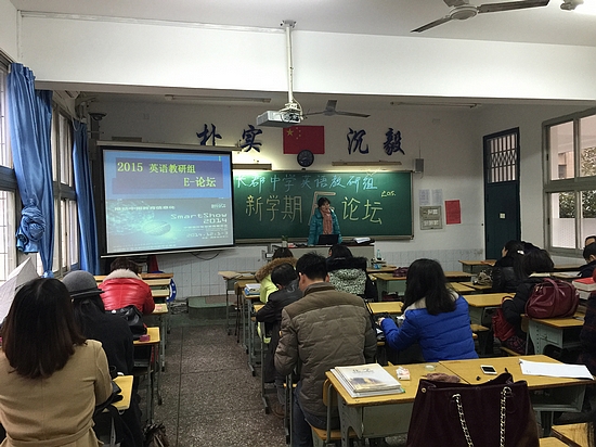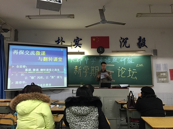 2015年2月28日,长郡英语组在英语教研组长陈春华老师的组织下,进行了2015年上半期的长郡中学英语教研组E-论坛。其主题为:再探交流微课与翻转课堂。会上邀请了三位经验丰富的长郡老师演讲。