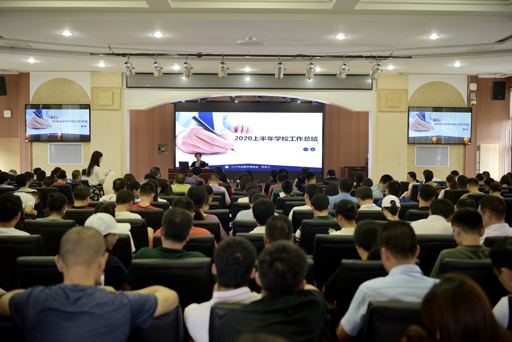 7月25日上午,学校在办公楼六楼会议室举行2020年上半年工作总结大会,全体教职员工参加会议。校长李素洁主持会议并讲话。