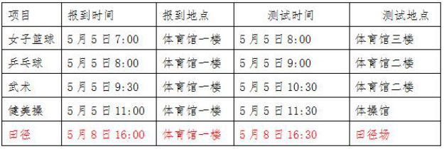 特别提示:由于省运会长沙市田径代表队选拔赛5月5-6日举行,我校田径项目测试推迟至2018年5月8日(星期二)下午4:00举行