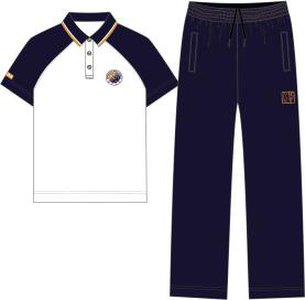 T恤白色PANTONE19-4016TCX,裤子PANTONE4147C |