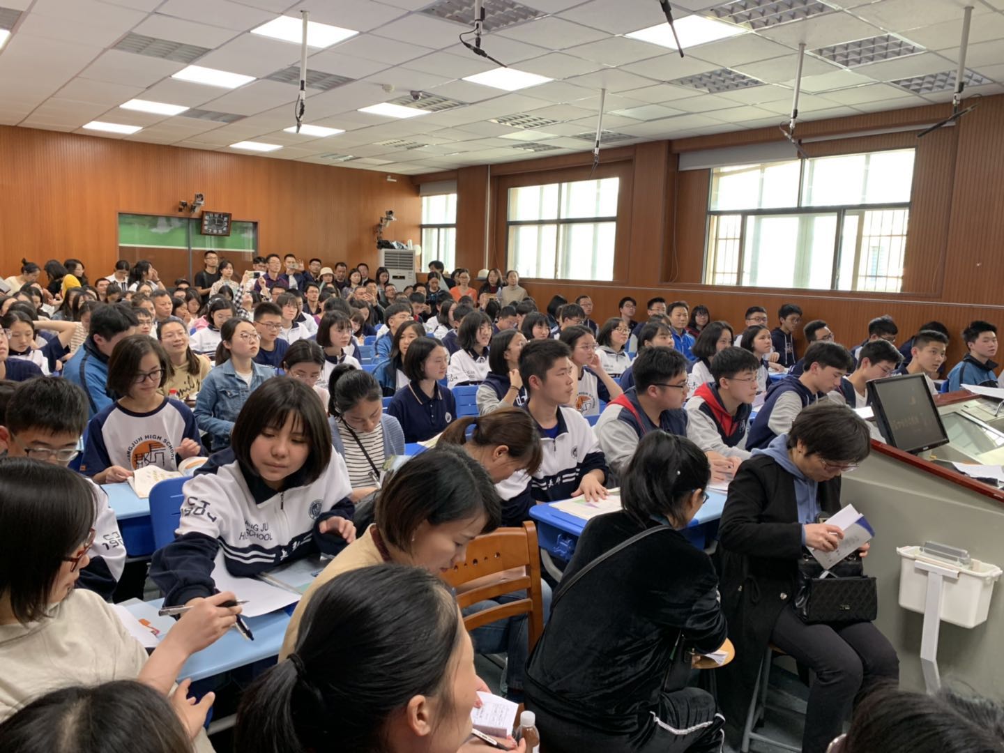为更好地推进课堂教学改革,展示我校高中课堂教学改革成果,4月17日下午,高一年级地理组童惠老师和高二年级地理组晏朝辉老师科技楼二楼录播室做优秀课例展示,来自省内外近200名地理教师参与课例研讨。