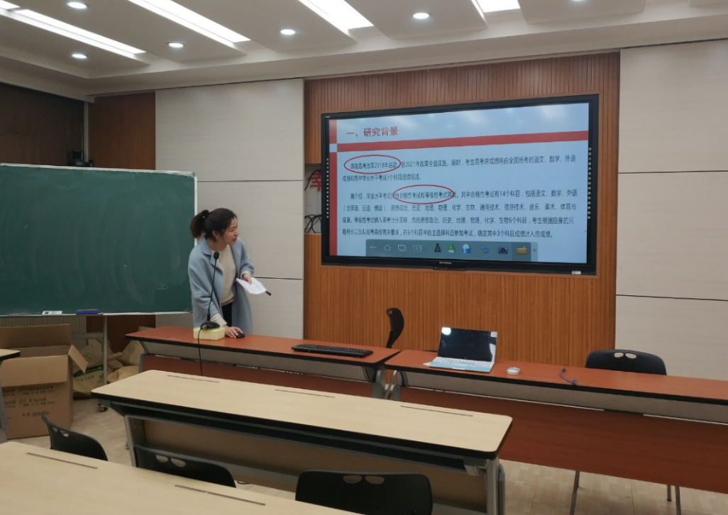 首先高三化学组吴佳怡老师进行了充分的文献调研,对新高考的各种变化进行了剖析,告诉我们需要提升职业素养,促进专业发展。同时要解放思想,重构课堂,并在新高考的变化中适应教学生活,享受并乐于探究新的教学模式。