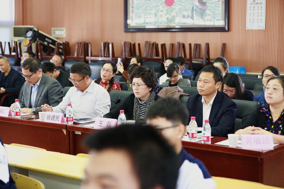 化学教学该如何实现化学核心素养的落地?带着这个问题,10月31日,长沙市高中化学骨干教师培训班的全体学员与长郡中学化学教研组一同展开了以“素养为本”的化学教学研究活动。本次活动特别邀请到了北京师范大学化学学院王磊教授进行了全程指导,并为大家就“高端备课”的理念及具体实施展开了精彩讲座?;疃玫搅顺たぶ醒У拇罅χС?,李素洁校长莅临会场致辞,肯定本次研讨活动意义非凡,表扬长郡化学组是一个团结、优秀的集体,并寄予厚望。本次活动从早上9:00一直延续至下午17:00,安排紧凑、内容丰富,包含课例展示、小组研讨、分组汇报、专家点评等多个精彩环节。