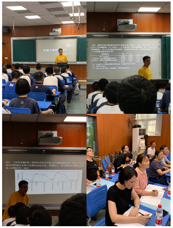 课后,李翔老师简单地进行了说课。利用反应机理,将反应速率的影响因素探究清楚。整堂课由复联“打响指”视频展开,融合了多个有关催化剂的高考综合题目,深度促进学生对催化剂帮助反应的慢反应、快反应的理解。