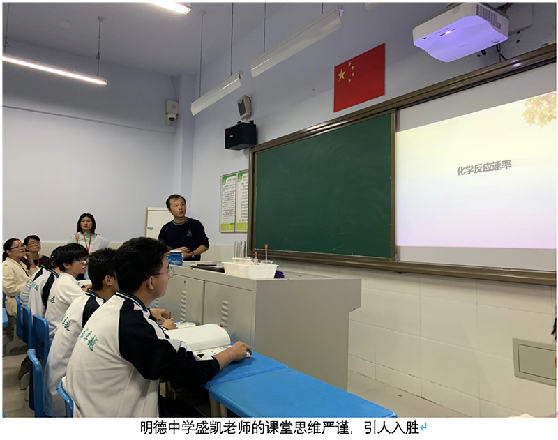 明德中学的盛凯老师,立足于教材,着重于夯实基础,以高考题为素材,在解题中帮助学生巩固了知识框架网络,还通过教材习题中的“自催化反应”提出问题,引发学生的辩证思考,整堂课娓娓道来,学生收获颇丰。