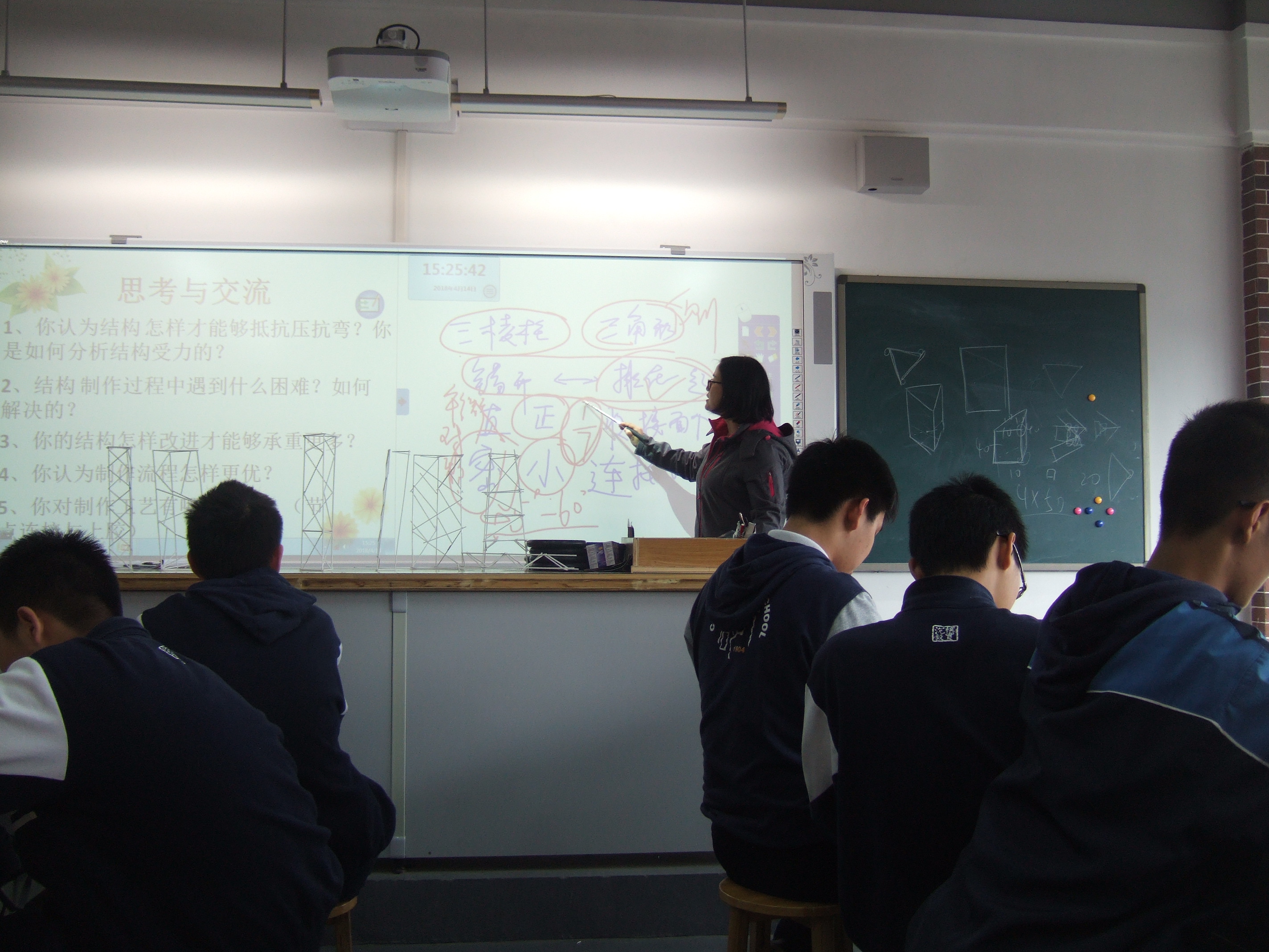 从内容上来讲:承压结构试验是为后期的悬臂梁结构设计打基础的教学。承压结构试验的反思是在实践操作之后的关于结构设计理论学习的重要部分。通过试验之后进行反思得到的知识比教师讲解后进行制作得到的知识对学生来讲更深刻,更容易理解。