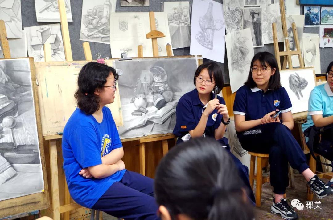 高考不久,长郡中学2018届美术生张汝乔、曾书怡怀着对母校的感恩之情,回到学?;矣胙У苎妹且黄鸱窒碜约旱淖ㄒ笛袄獭?/span>