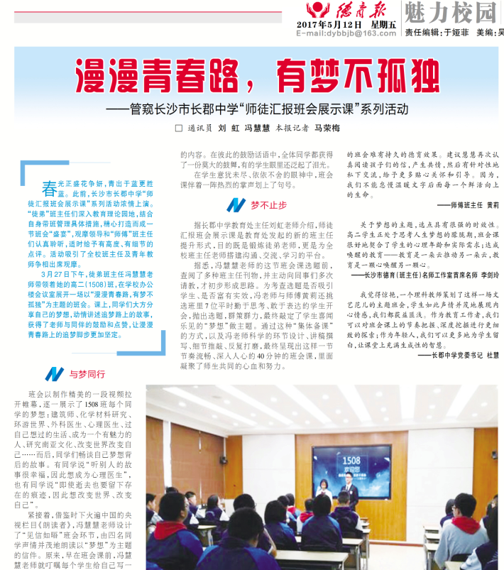 德育报:漫漫青春路,有梦不孤单——管窥长沙市长郡中学“师徒汇报班会展示课”系列活动