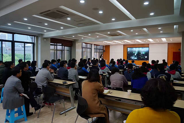 2017年4月10日下午,在班主任唐小龙老师的精心筹划、同学们的精心筹备下,高一1615班在办公楼四楼开展了一次关于“孝之道,在于感恩”的主题班会。全校班主任及年轻教师参与其中?;嵘希欠窒砹斯赜谛⒌氖韬凸适?,感受了音乐中浸润的父母恩情,讲述了自己在与父母相处过程中做过的最后悔的事情。通过同学们的自我反省以及老师提出的殷切希望,让同学们更加理解尊敬的意义不在于追求回报,而在于内心的欢乐;感恩的对象,不止于父母,还应包括同学、老师、学校、祖国乃至于遇到的各种困难与挫折。