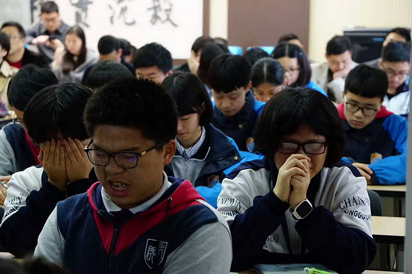 李健的歌声让同学们十分感动,尤其是歌词中的父亲对子女们平凡却又不凡的付出,大家对此深有感触,父母对孩子的爱总是那样无私。在此之后,主持人为大家讲述了一段感人肺腑的故事,并且同学们聆听了以这个故事为创作背景的音乐《天亮了》。在歌词的感召和旋律的感染下,同学们逐渐进入了状态。