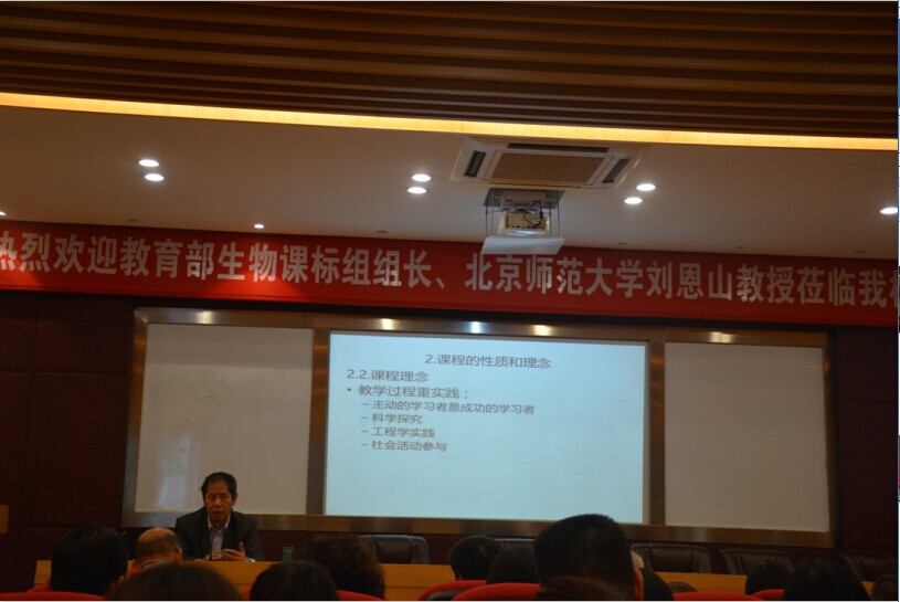 此次研讨活动包括刘恩山教授的讲座《从高中生物学课标修订看课堂教学改革》和教师向刘恩山教授提问两个环节。刘恩山教授就生物学课标中的关键词、课堂的性质和理念、课程宗旨的细微变化、高中课程结构和新课改引领的教学改革这五个方面对高中生物新课标进行了详尽的解读。此讲座和答疑时间虽然只有短短的三个半小时,不仅有助于高中老师全面了解生物新课标,也对高中教师实施新课标下的课堂教学有重要的指导意义。