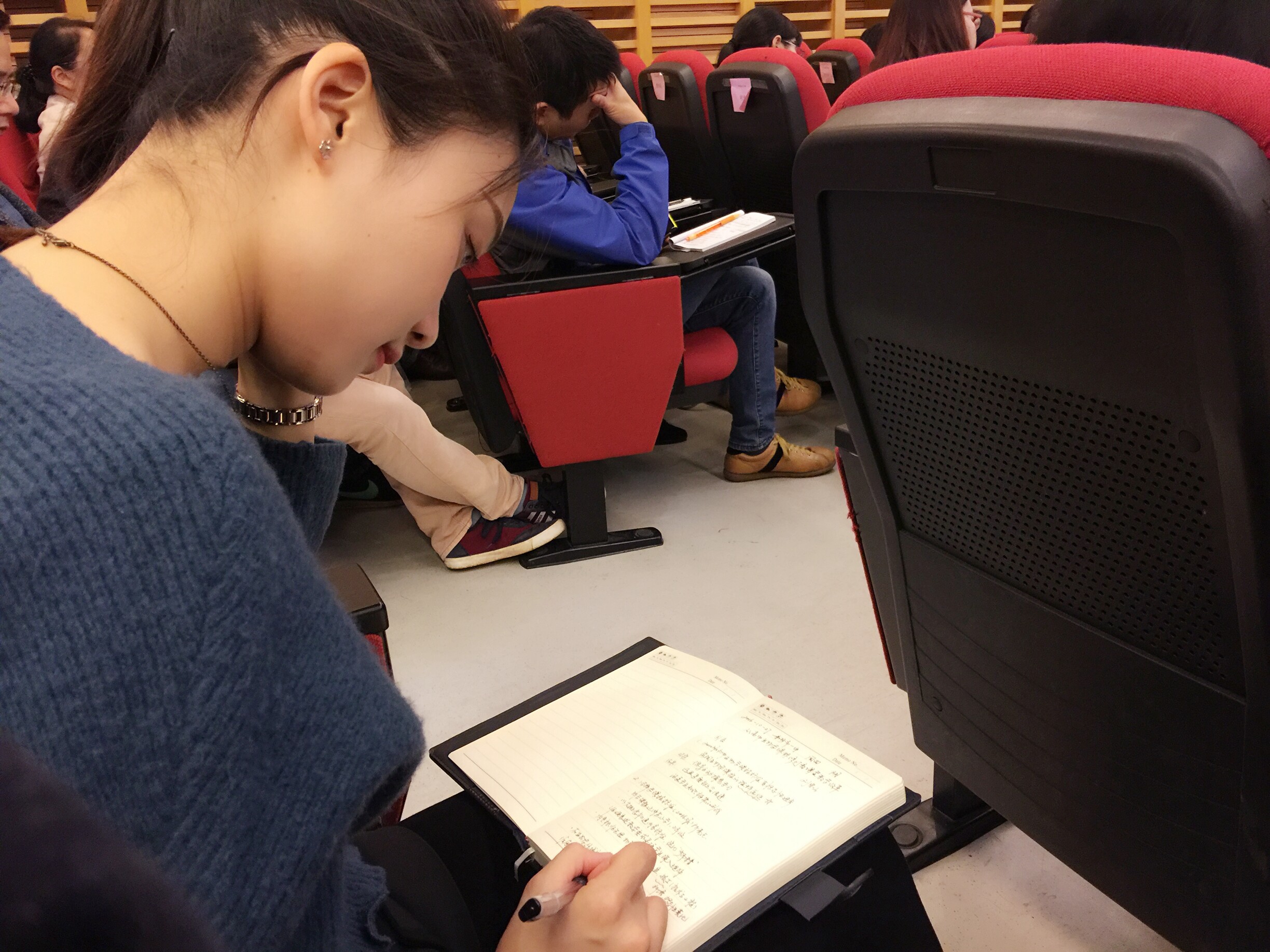 全体成员聚精会神听讲座和作笔记