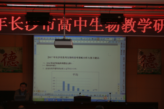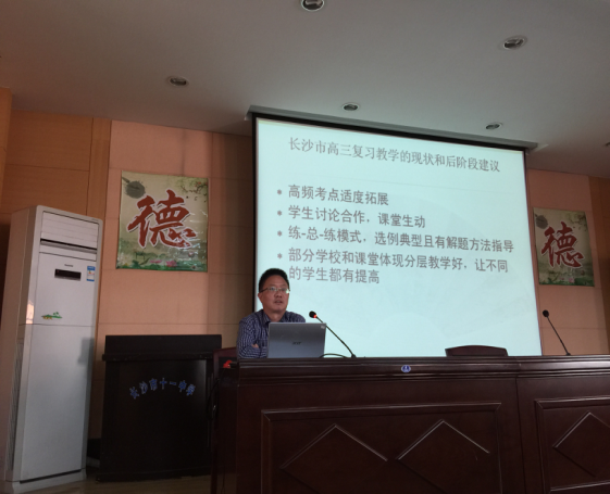 下午进行的是专家讲座环节,专家老师以实践为依据,结合理论,对今后的生物教学进行指导。首先由来自湖南师大附中的特级教师汪训贤老师做了《2016年长沙市生物学科高考分析报告》的讲座。讲座从高考试卷难度、对学生能力的考查、高考备考复习建议等多方面进行了解析。随后,地质中学的特级教师刘海龙老师做了《2017年长沙市高考生物科迎考策略分析与复习建议》的报告。结合生物学素养如生命观念、理性思维、实验探究等探讨高三复习的复习策略。最后由长沙市教科院的孔春生院长结合前期调研结果做了《长沙市高三复习教学的现状和后阶段建议》的报告。报告中对一线教师的辛勤付出、良好的素养给予了肯定,同时也指出存在的不足,如只讲不练、满堂灌的教学模式等,针对问题提出了一系列建议,如注重宏观把握教学体系和方向、给学生创造机会展示自我、精讲精练等。
