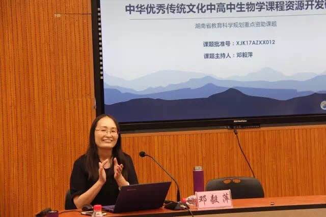 2017年9月28日,长沙市邓毅萍生物名师工作室在长郡中学召开了省级课题《中华优秀传统文化中高中生物课程资源开发研究》(批准号:XJK17AZXX012)开题报告会?;嵋樘匮野ê鲜〗逃蒲Ч婊旃依钚∏蛩ぃど呈薪炭圃焊痹撼た状荷鲜?,教育部基础教育课程教材专家工作委员会委员、特级教师高建军老师。长郡中学陈来满副校长,教科室骆宪武主任,王岳飞副主任以及课题组成员共30余人参加了会议,骆宪武主任主持了开题报告会。