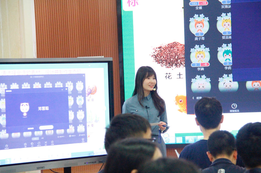 活动由长郡中学生物教研组组长胡昆老师主持,长郡中学校长李素洁致辞,高度重视信息化教学的推进。随后由长郡中学优秀骨干教师邓娟老师为在场观摩教师群体带来《高中学业水平考试复习——生态系统的结构和能量流动》示范课??翁弥饕蒲诵乃匮奶岣呓杏呕杓疲浞掷枚嘀纸萄ё试?,将知识复习与现代技术进行深度融合。教学从知识上分为生态系统的概念、结构、能量流动三个部分,结合长郡中学高一同学在科技节中开展生态缸的设计和制作的这一情境,深化学生对生态系统整体性的理解。在随后的知识复习中,应用了希沃多种相关软件功能,由知识的易到难,由学生的个体到群体,一步步推进课程的进行,旨在着重于学生理性思维的培养。最后回到生态农业的设计,鼓励学生用知识服务于社会,提升了社会责任感。
