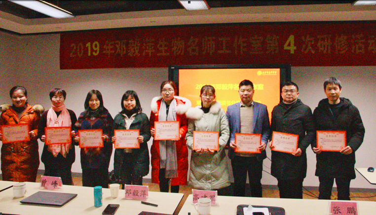 来自湖南省教科院曾峰老师为我们带来了他听分享会的收获:观课不等于评课,课堂观察高于听课。要不断更新自己的观念,深入思考如何进行课堂观察:1.切合教育目标;2.切合教研热点;3.明确边界,加强跨界;4.合理应用信息化技术。邓毅萍首席从选择这两本书的目的开始了她的总结发言。旨在让学员们利用课堂教学评价体系的书,加强理论学习,从而指导课堂设计。观课是一种学习,而评课是提升自我。要更多的在评课上下功夫,通过评课要有三个提升:一是理论水平,二是学习水平,三是教学能力。从不同的角度、维度来评价不同的课。一份耕耘一份收获,正因为有这样扎实的研讨分享活动的开展,工作室学员的专业素养和教学能力在不断提升。相信今天的分享会,工作室学员的收获是最大的。参与就是成长,分享更是一种历练。分享会结束前,与会的嘉宾为读书分享的老师颁发奖状。长沙市邓毅萍中学生物名师工作室全体成员与嘉宾合影留念。
