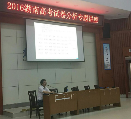 本次教研活动分为三个环节,第一环节:名师陈峰发言,分析这次举办这次活动的意义。第二环节:昌国良教授主讲,分析2016年湖南高考考情以及2017年高三备考建议。第三环节:教师提问。