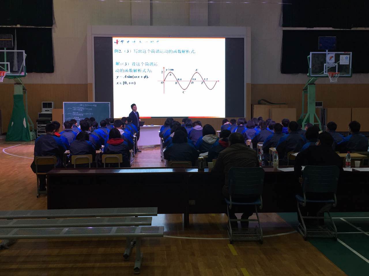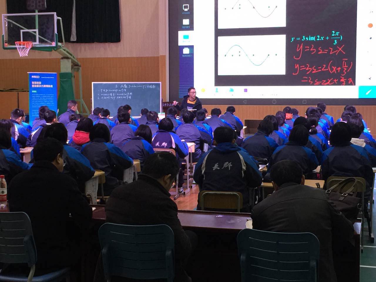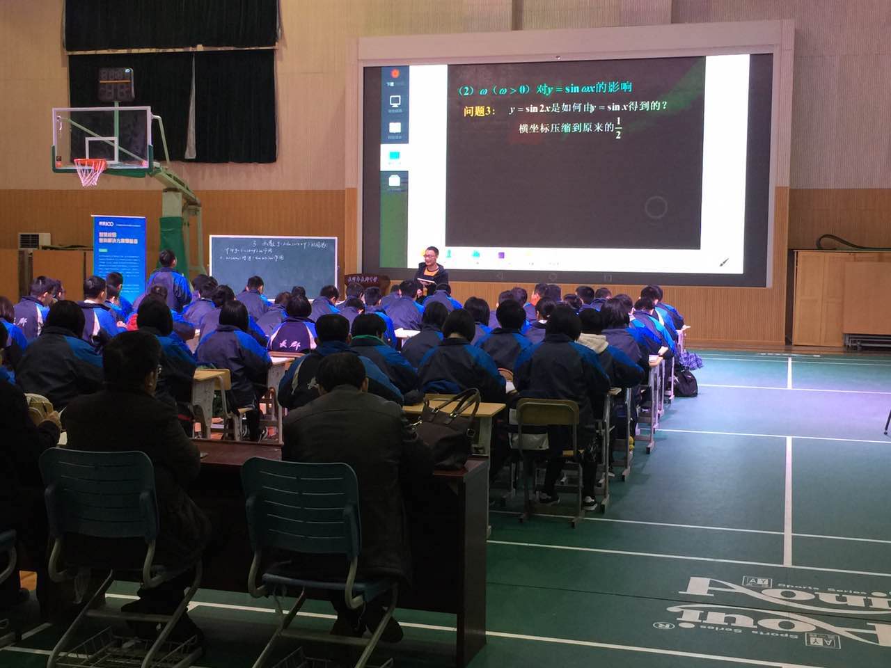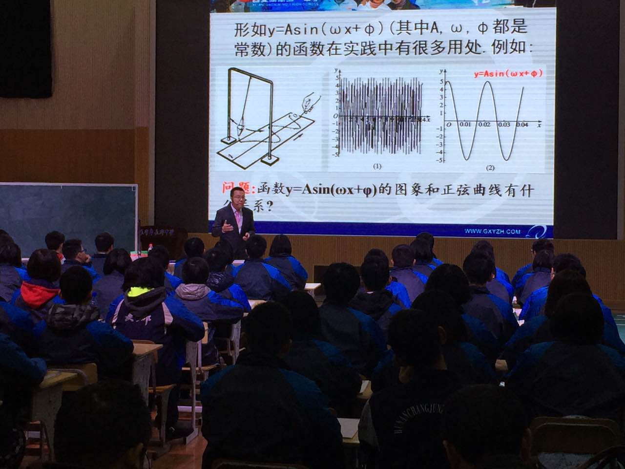 来自长郡中学的田茂清老师,华师一附中的周龙虎老师,西安高新一中的黄为老师都以三角函数的图像变换为主题展开教学。田老师以天气变化拟合出周期变化的曲线为例,进入课堂教学,对教学内容的处理先分后合,先逐步分析各元素对图像变换的影响,然后分析整体对图像变换的影响。整个教学过程运用平板教学,利用平板展示学生的作业情况,并设置抢答环节与投票环节,使整个课堂氛围活跃起来。周老师运用生活中的实例:“交流电中的电流与时间变化的图像”引入,并且提出问题:各元素分别是如何对三角函数的图像产生影响,首先,周老师带领学生找到φ对三角函数图像的影响做示范,整个过程运用几何画板操作。然后让学生自己找到,A的取值对图像的影响,并得到一般规律?;评鲜υ诮萄Ч讨性擞眉负位宥愿饔跋烊呛枷竦脑刂鸶鼋惺笛檠橹ぃ⒍云浣惺壑?,并且将问题探究的难度层层加深,对变换的顺序提出了思考。