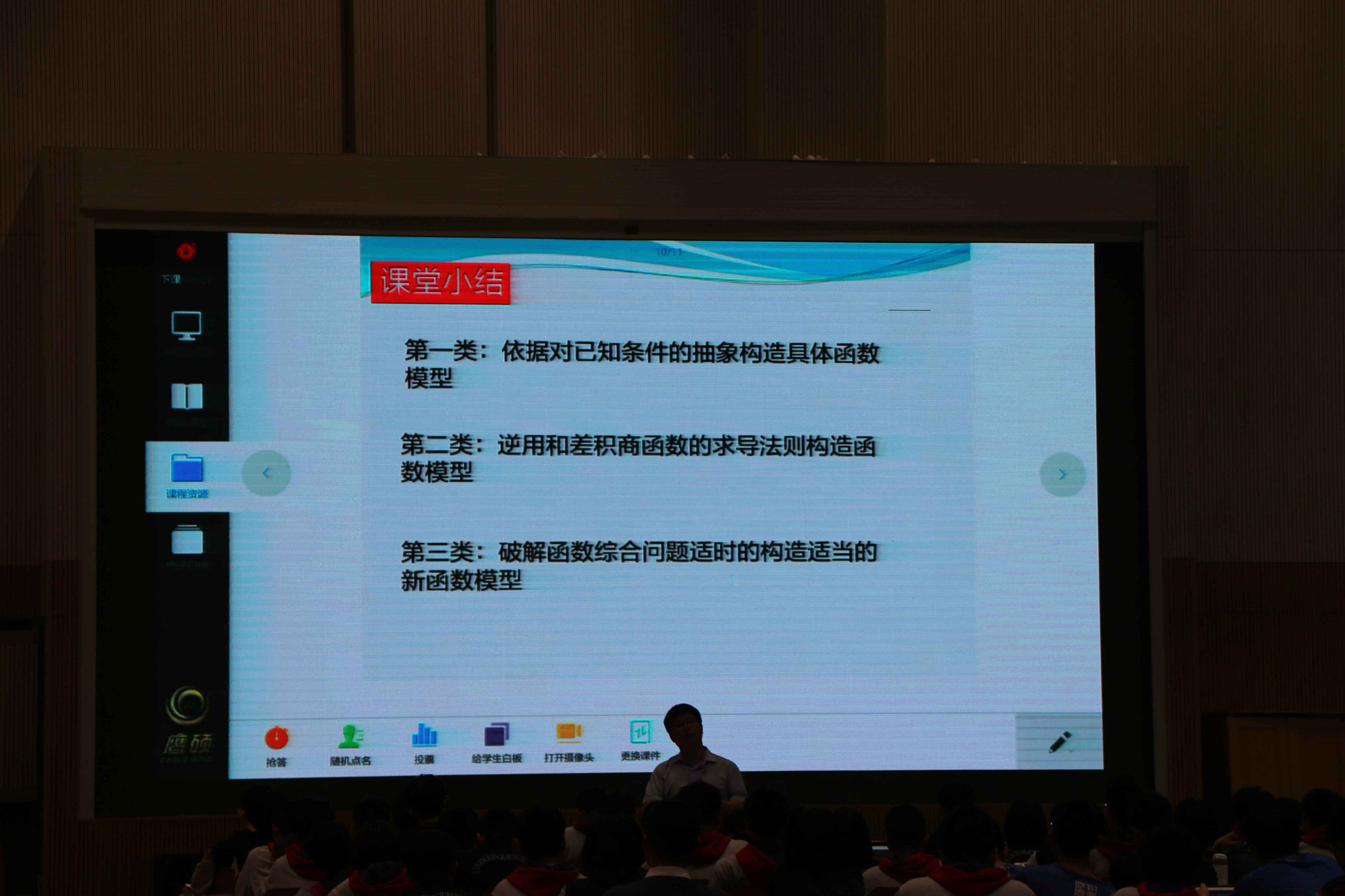 陈家烦老师骨干教师展示课 作者: 来源: 发布时间:2018-04-20 浏览次数: 次 【字体:小 大】 2018年4月18日星期三下午,第二节课由高三陈家烦老师带来《导数函数的应用——函数模型构造之应用》。本堂课是一个微专题复习,定位主要是着眼于学生复习中觉得较吃力的函数构造模型问题。通过三类典型问题以及平板多媒体,利用“互联网+概念”来组织教学,着重培养学生的数学核心素养:数学抽象与直观想象,数学建模与数据分析运算。 分享到: 【打印正文】