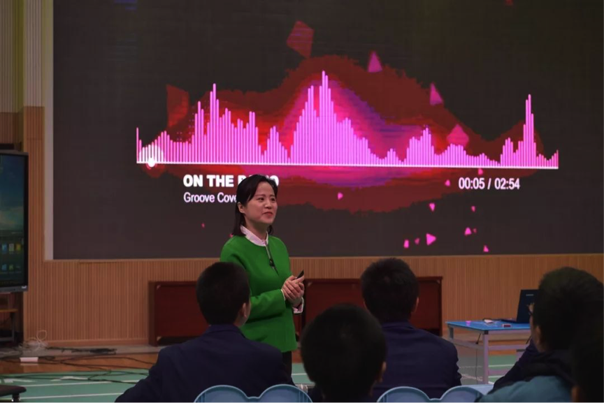 长郡中学刘小苗老师从音乐的角度出发,引出本堂课的主旨问题,再采用变量研究法,深入浅出地让学生体会到图像的变换。