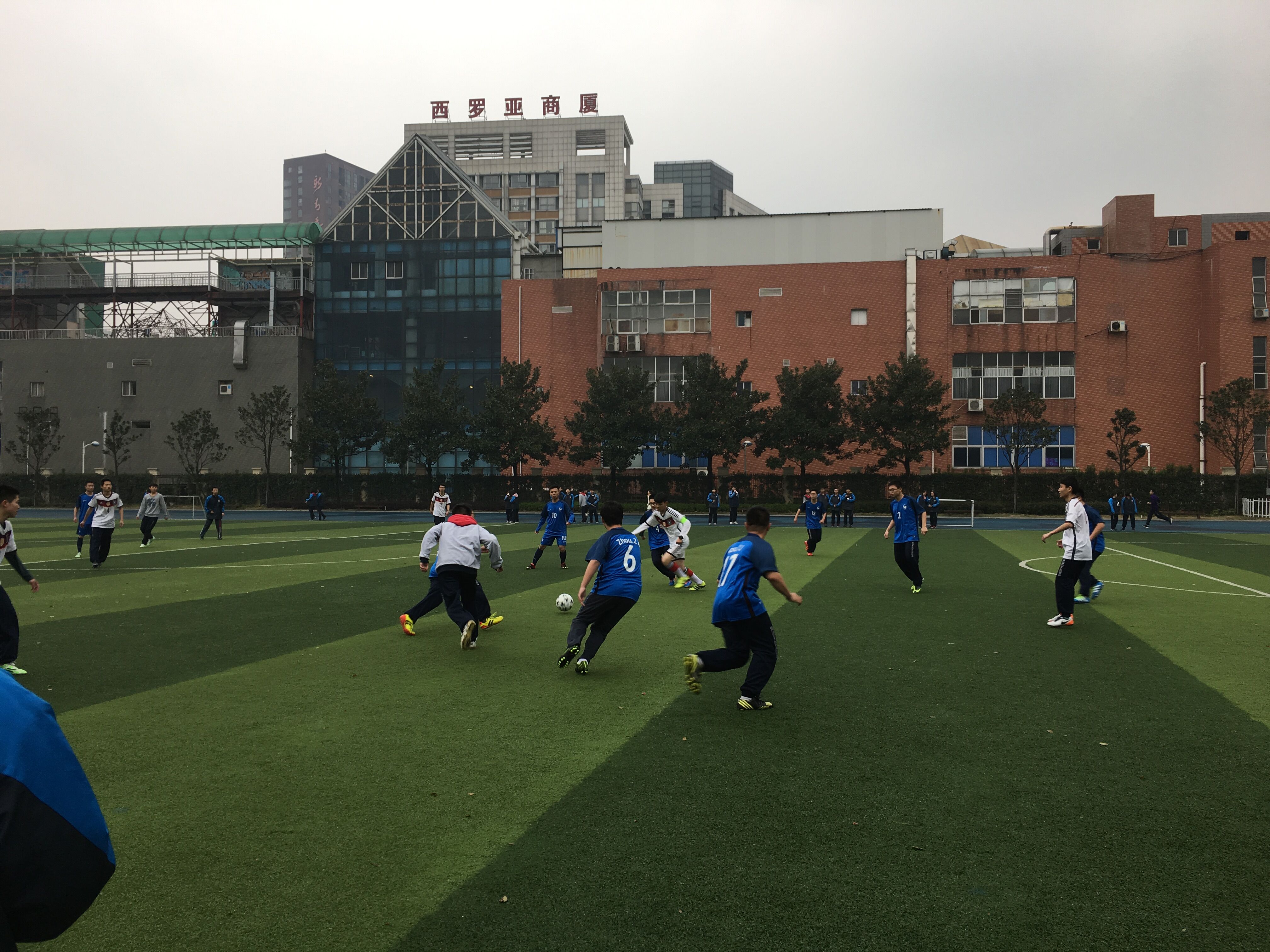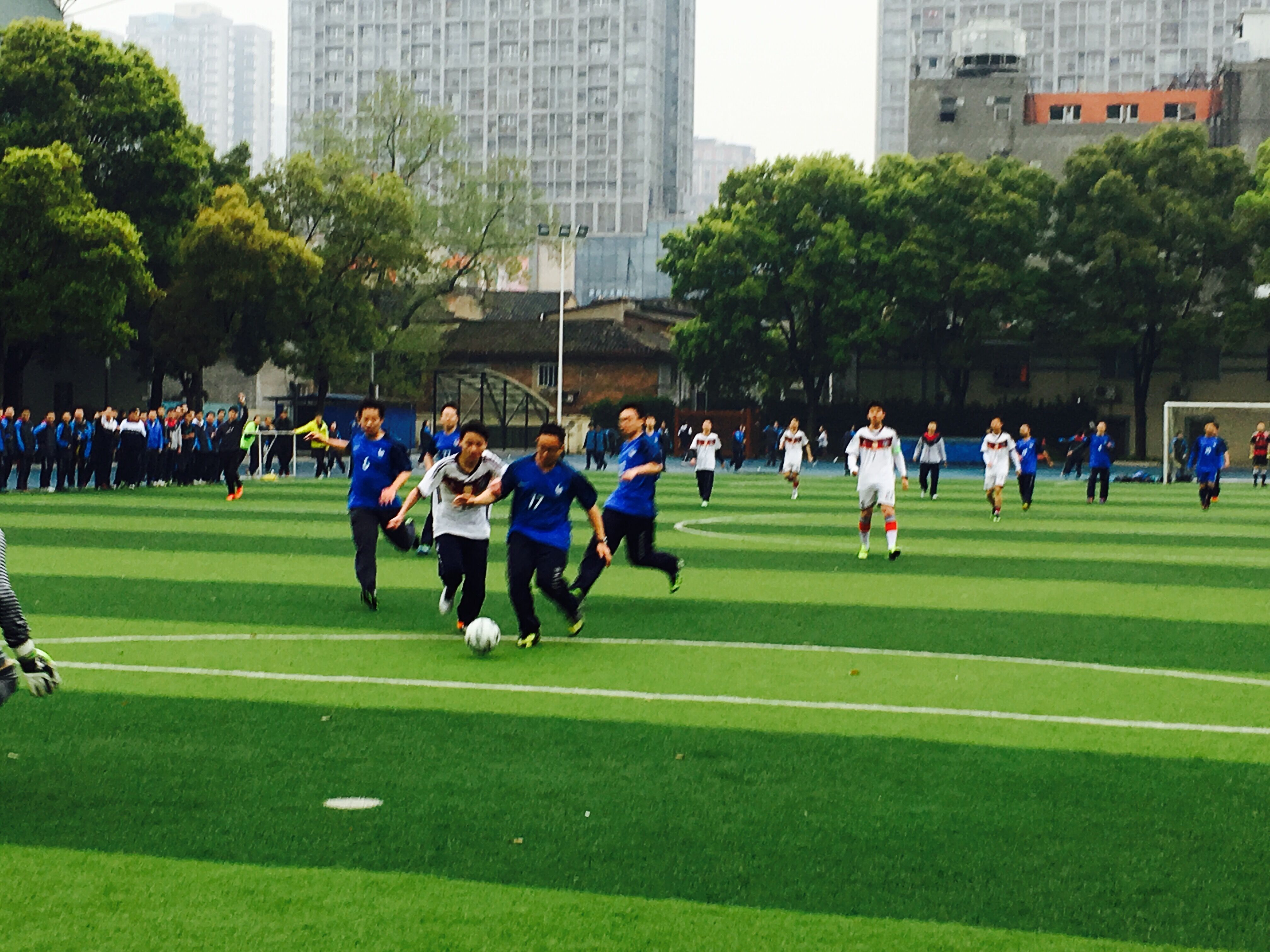 队员们整齐有序地入场,精神饱满,意气风发。随着裁判员的一声哨响,队员开始了激烈地争夺。比赛过程中,同学们虽然控球、传球、顶球、防守、射门等基本技能还不够娴熟,但双方队员激烈争夺、严密防守、带球过人也是有模有样,而场外的啦啦队激情昂扬、潮气蓬勃,活力四射,也不时鼓舞士气,校园里充满了青春和活力。最终,二层和五层以0:0结束了精彩的比赛。
