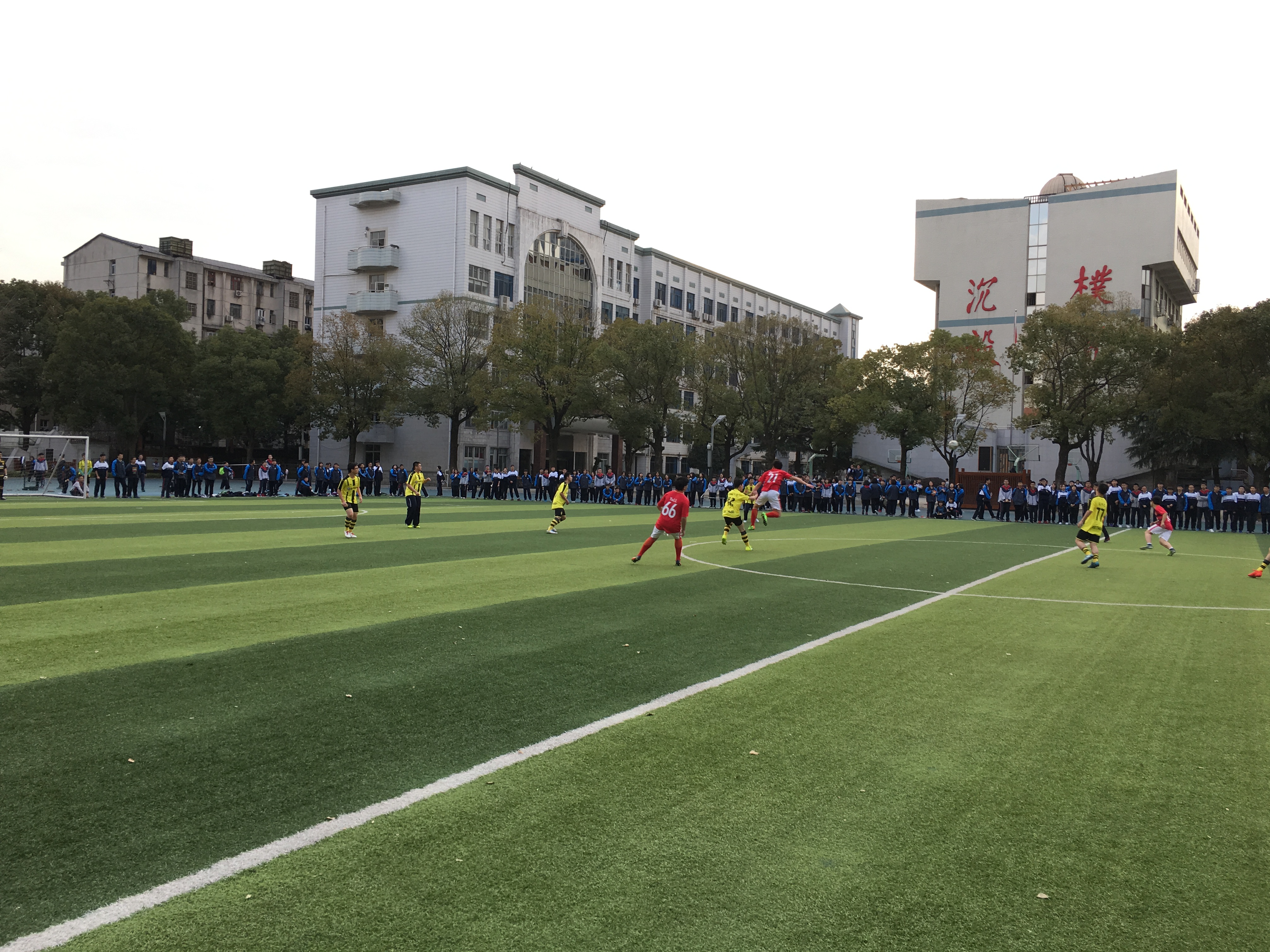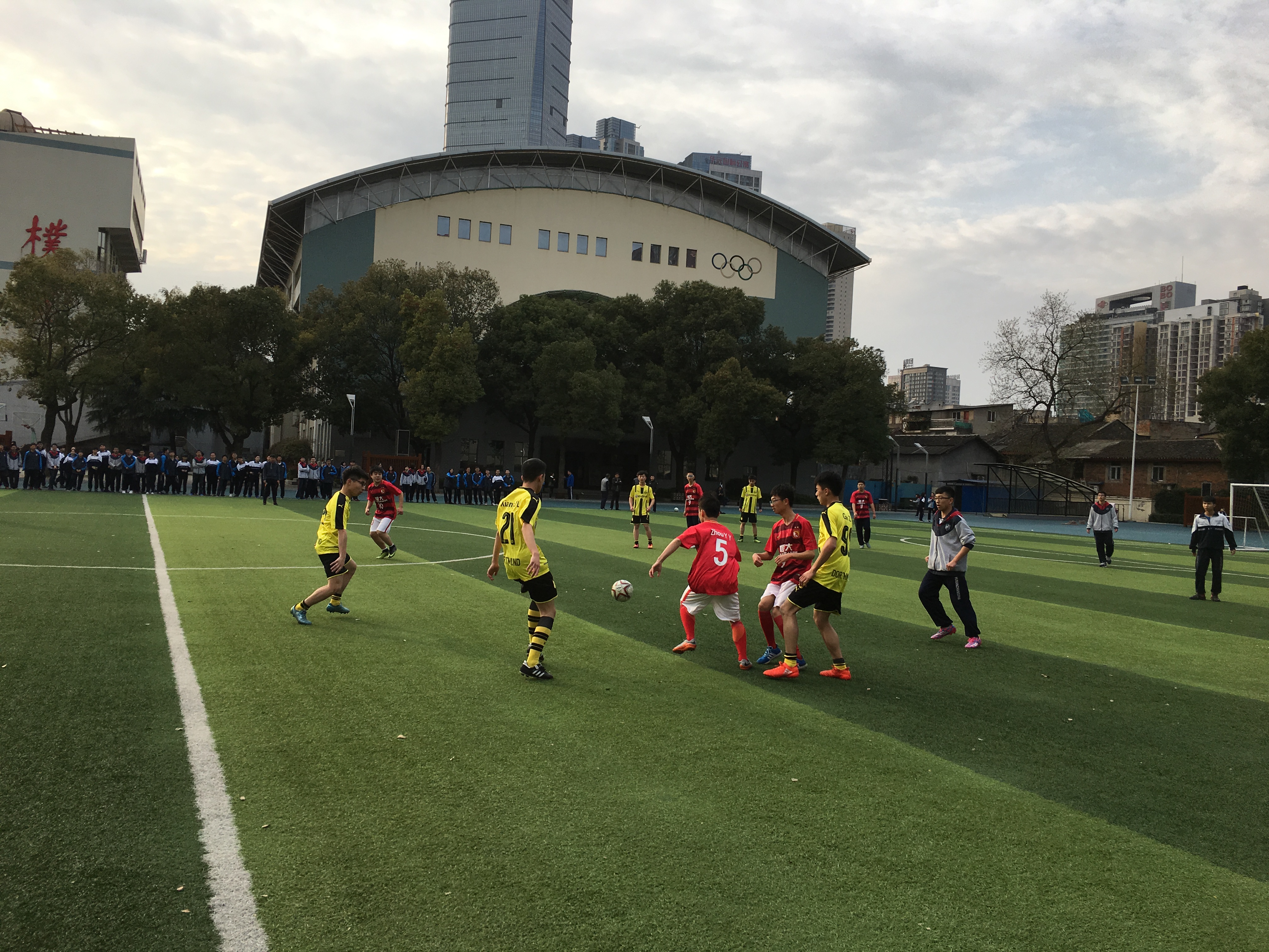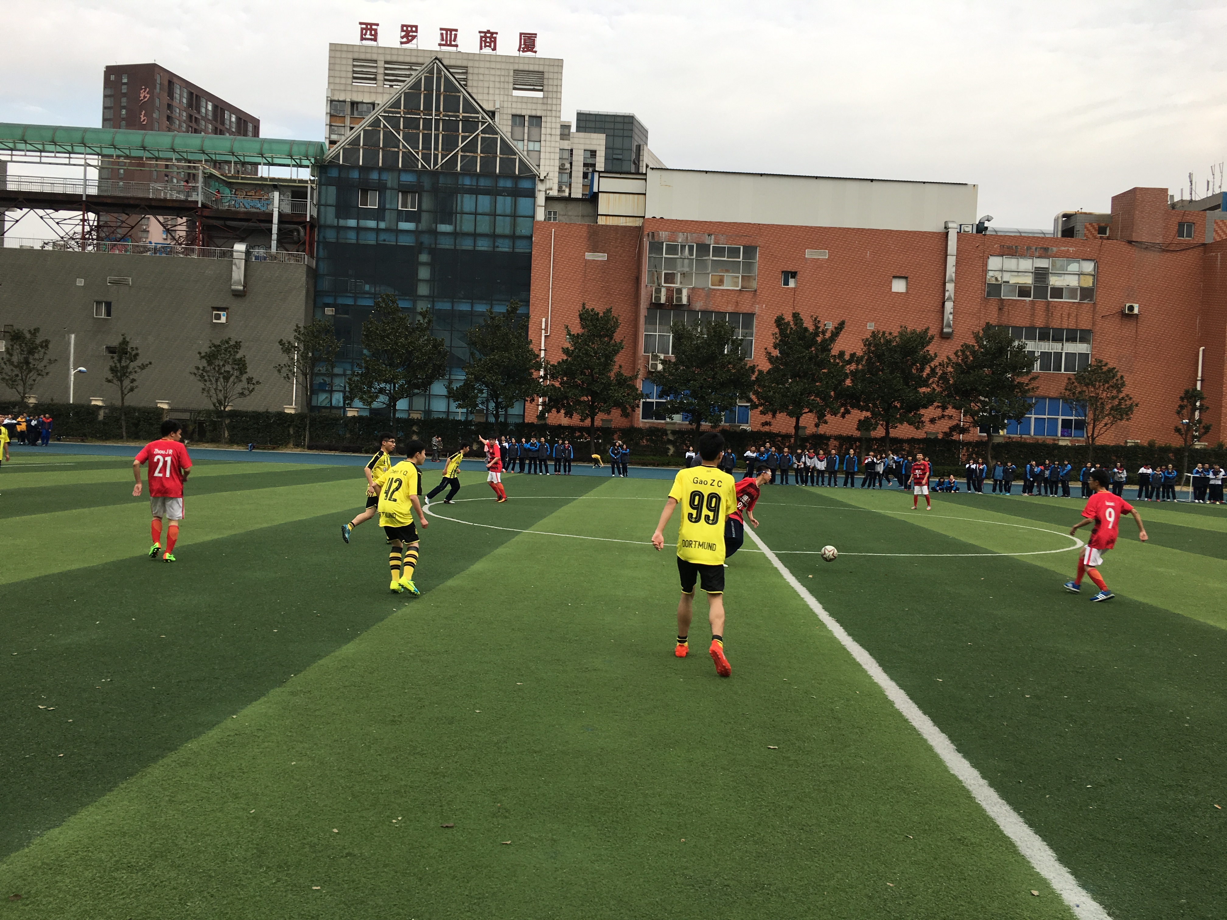 5点,运动员和裁判员入场。双方球员在一片欢呼声中展开了比赛。赛场上的每一位队员都竭尽全力,尽显自己的实力,他们奋力拼搏,不甘失败的精神吸引了所有同学的眼球,广阔的绿茵场就是他们精彩的舞台,而绿茵场下人声鼎沸,观看比赛的学生为各楼层的队员呐喊助威,声声加油声就是他们最高的奖项。