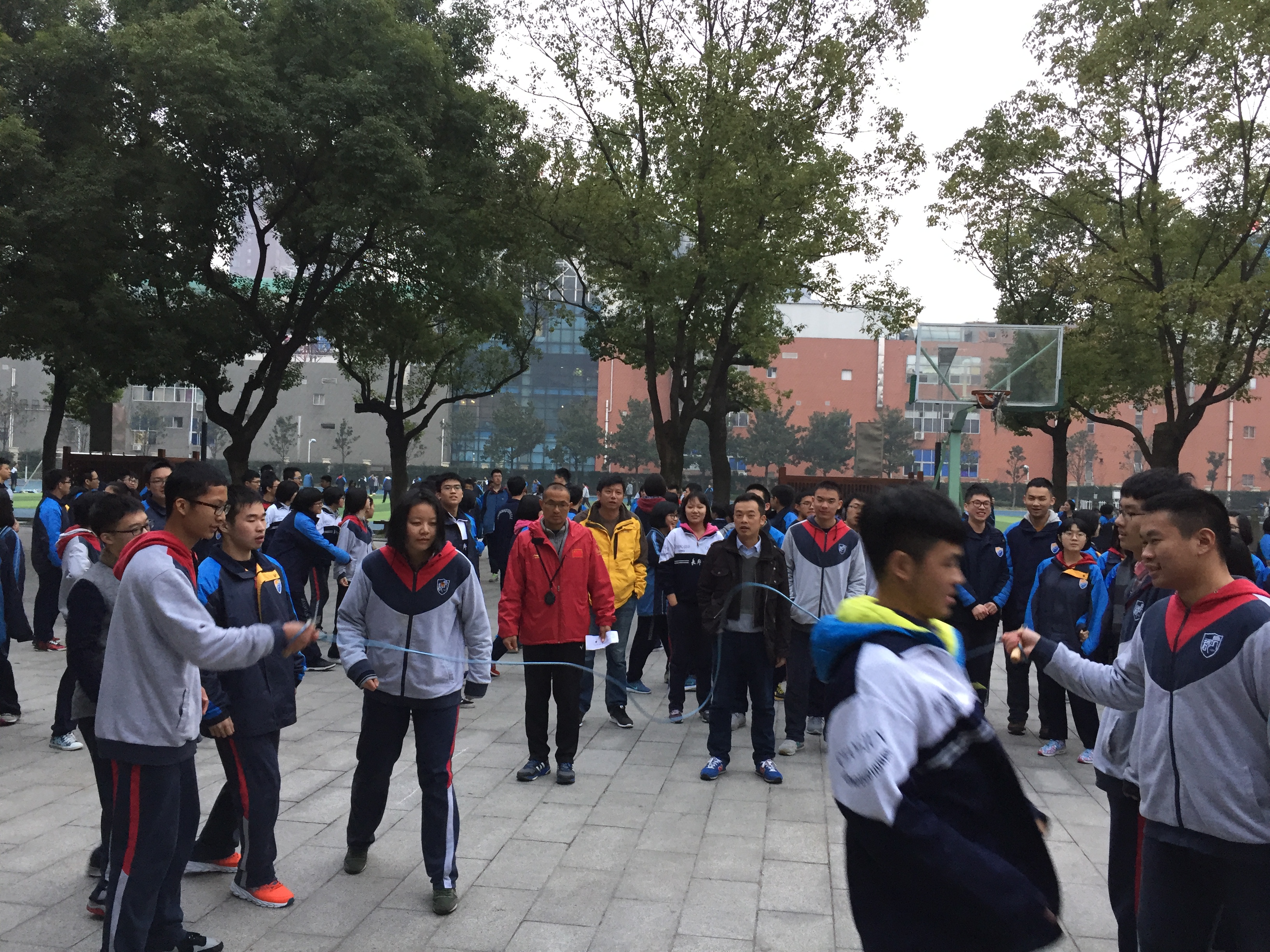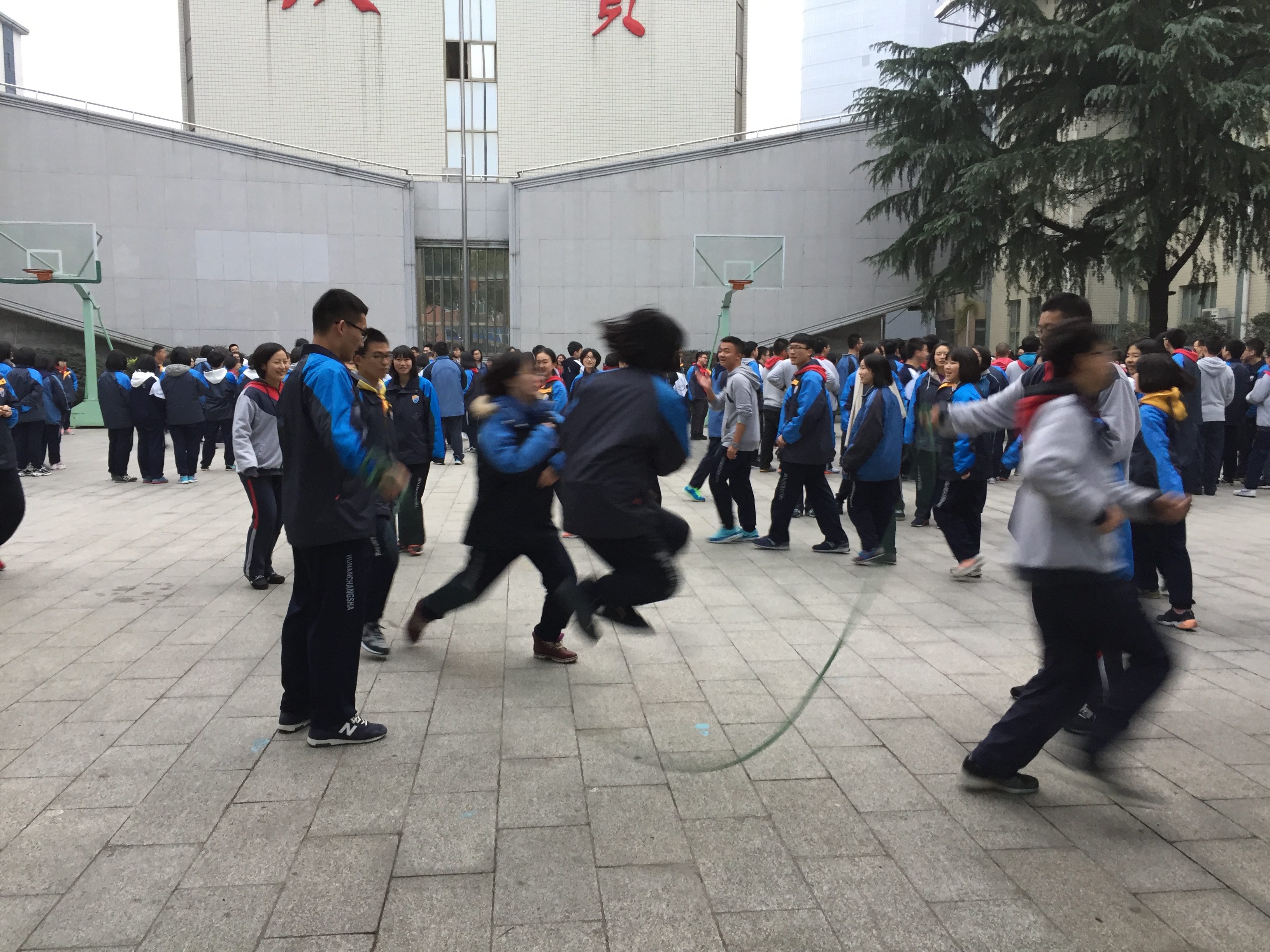 11月末,为了丰富学生业余文化生活,让学生走出教室动起来,年级组在高三体育备课组的协助下进行了一次集体跳长绳比赛。赛前各班在大课间、晚自习间隙、课间间隙、体育课上,都能很好地组织练习,郡园掀起了一场运动热潮,为紧张的学习与寒冷的冬天带来了一股活力!