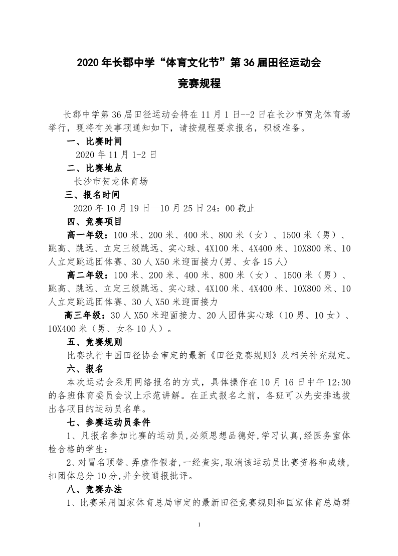 2020年长郡中学第三十六届田径运动会竞赛规程