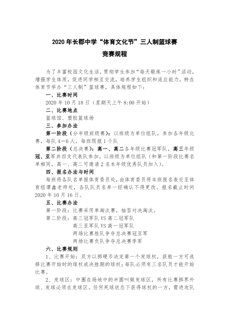 2020年长郡中学体育节三人制篮球赛规程