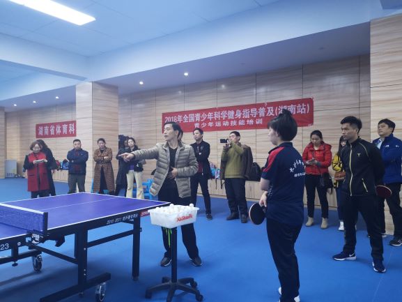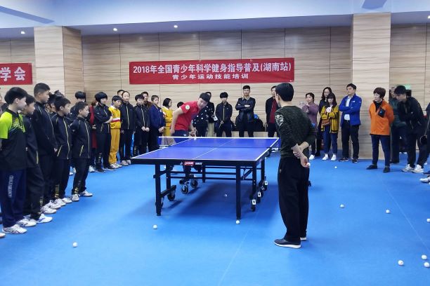 11月28日下午,2018年全国青少年科学健身大讲堂和运动技能培训讲座(乒乓球专?。┰谖倚>傩小8媒沧?018年全国青少年科学健身指导普及系列活动之一,主要普及乒乓球相关的专题知识及专项技能培训。本次活动共吸引了我校乒乓球队队员、教练员及家长共计60余人。出席活动的专家、领导有:湖南省体育职业学院副教授、湖南省乒乓球队领队肖向阳;湖南乒乓球队总教练刘文华;长沙市体育训练竞赛管理中心欧阳发明副主任以及长郡中学总务处周正主任。体育教研组老师参与活动组织。