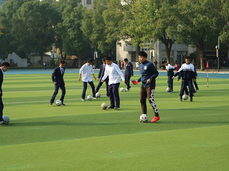 11月23-24日,我校迎来校园开放周,为期两天的活动迎来了来自全国各地约四千名教师前来观摩听课。各年级体育选修课程照常进行,根据学生的兴趣爱好、普及程度、师资、场地、器材以及传统项目,我校体育课程分别设置了篮球、足球、排球、乒乓球、羽毛球、田径、武术、健美操等项目作为选修课。
